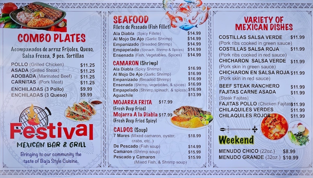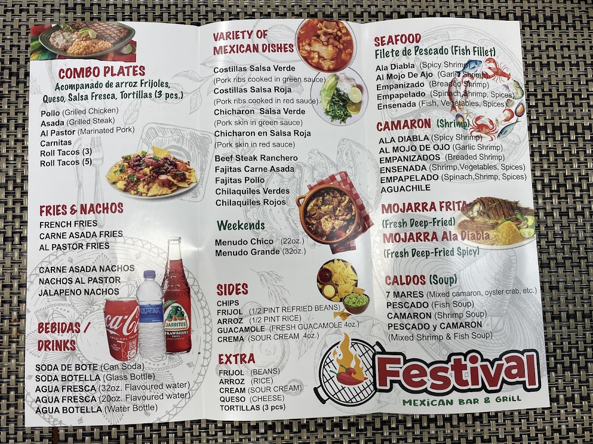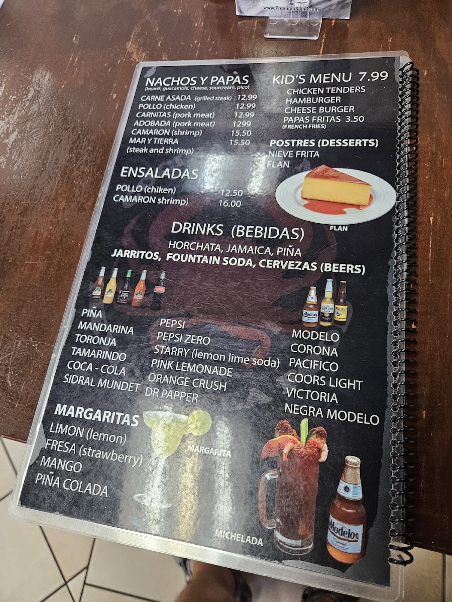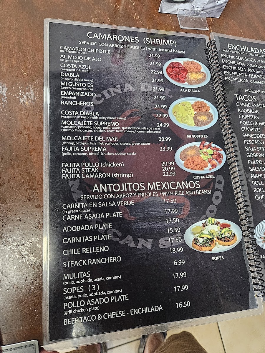 To complement meals, beverages like Horchata Mediana (20 oz), Jamaica Grande (32 oz), and Coca Cola Mexicana add traditional flair. With options ranging from Kid’s Cheeseburger & Fries to seafood cocktails like Coctel Camaron and Campechana, Cocina Del Mar’s extensive menu ensures that every craving-from land to sea-is satisfied with authentic taste and generous portions.
